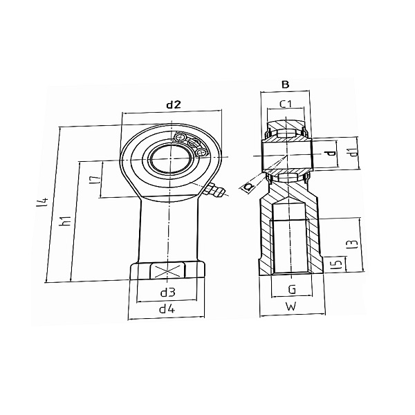 Hochleistungs-Gelenkkopf BRTF.. mit integrierter Tonnenlagerung, Maßreihe K, Innengewinde links, vollrollige Ausführung, verzinkt, mit Deckscheiben beidseitig, nachschmierbar, Durbal