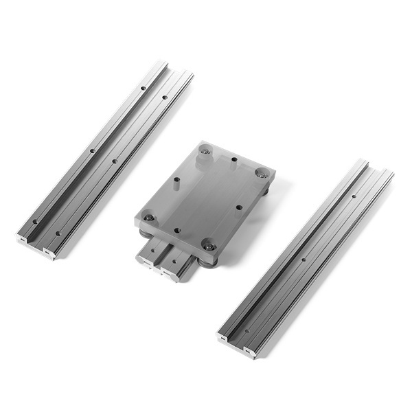 Führungsschiene DC16.., niedrige Bauform, breite Aluminiumleiste mit zwei gegenüberliegenden verchromten Stahlwellen (CH) mit Durchmesser 16mm als Laufbahnen, Befestigungsbohrungen: einreihig - standard (S), Nadella