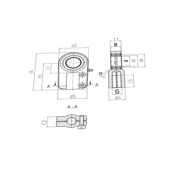 Hydraulik-Gelenkkopf DGK..-SK, Gehäuse aus geschmiedetem Vergütungsstahl, mit fixiertem Gleitlager DGE..-ES, mit Schlitz und Klemmschrauben, Gleitpaarung Stahl-Stahl, Innengewinde rechts, nachschmierbar, Durbal