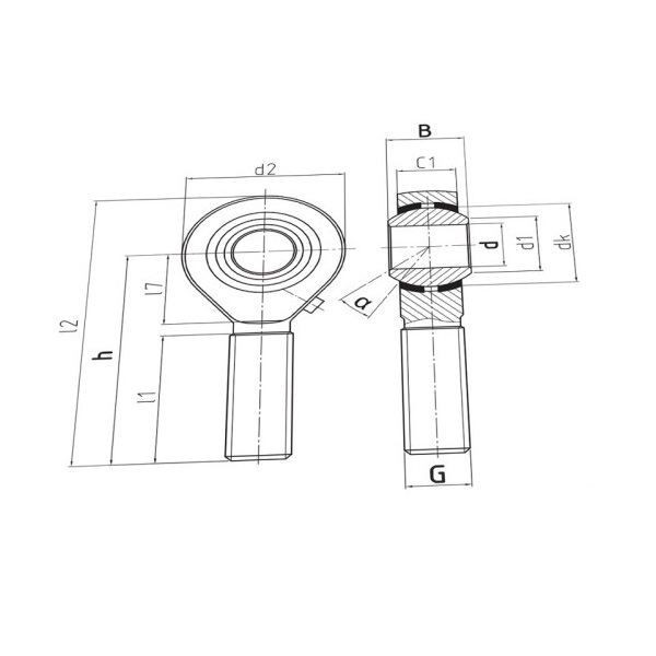 Standard-Gelenkkopf DPOS.. mit fixiertem Gleitlager, Gleitpaarung Stahl-Messing, Maßreihe K, Außengewinde rechts, verzinkt, nachschmierbar, Durbal