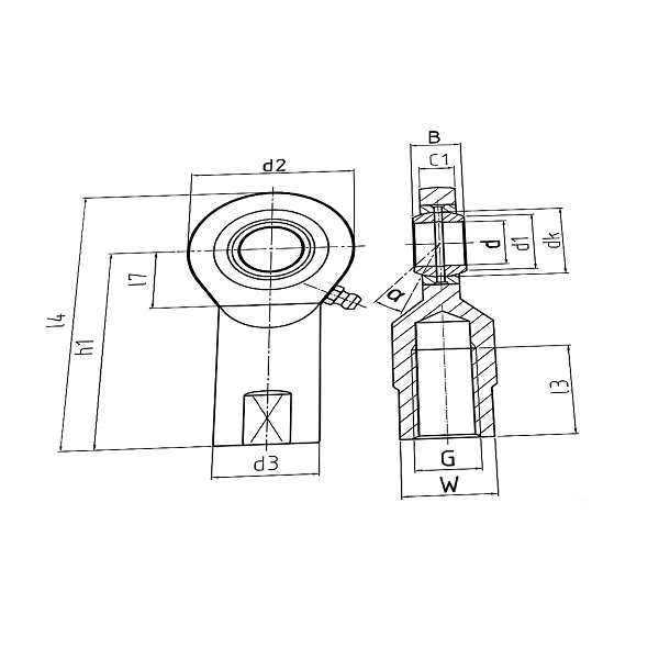 Hochleistungs-Gelenkkopf EFN.. mit fixiertem Gleitlager, Gleitpaarung Stahl-Stahl, Maßreihe E/EH, Innengewinde rechts, verzinkt, nachschmierbar, Durbal
