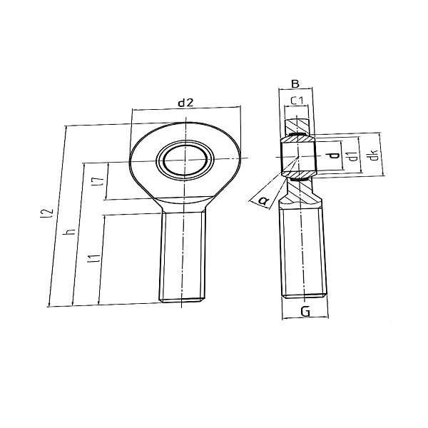 Hochleistungs-Gelenkkopf EM.. mit integrierter Gleitlagerung, rostfreie Edelstahlausführung, Polyamid-PTFE-Glasfaser-Compound Durbal-Glide als Lagerschale, Maßreihe E/EH, Außengewinde rechts, wartungsfrei, Durbal