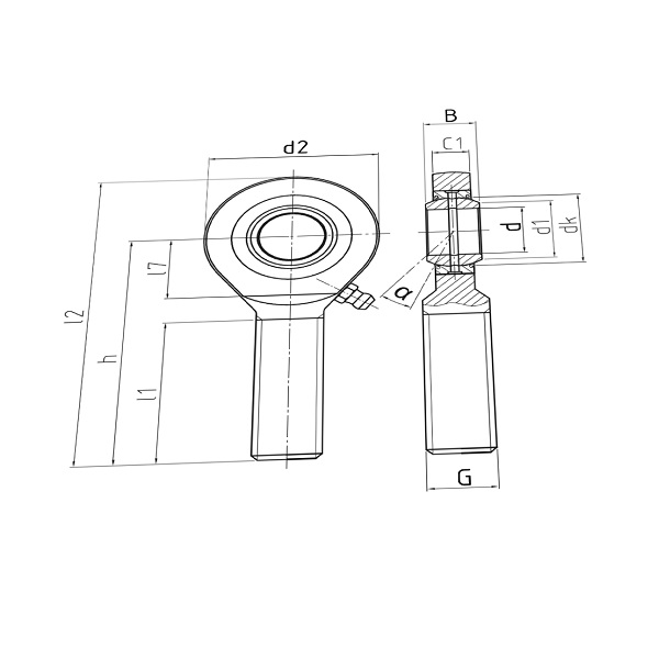 Hochleistungs-Gelenkkopf EMN.. mit fixiertem Gleitlager, Gleitpaarung Stahl-Stahl, Maßreihe E/EH, Außengewinde links, verzinkt, nachschmierbar, mit beidseitiger Abdichtung, Durbal
