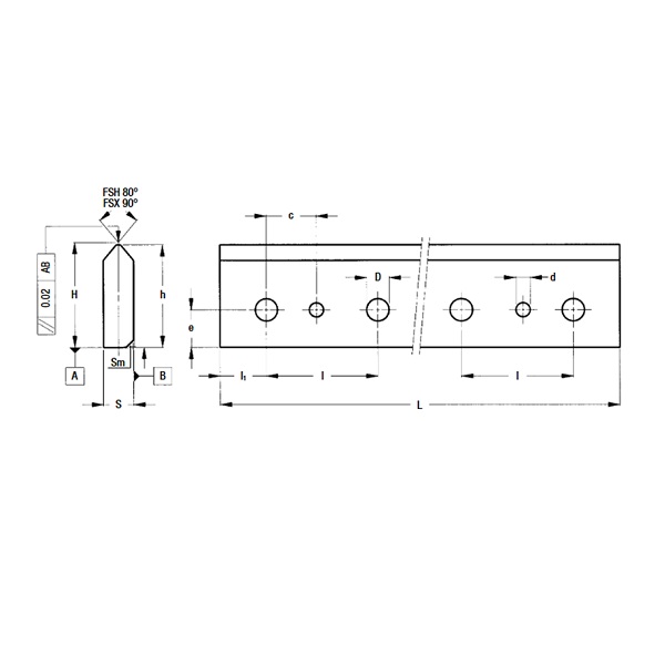 Führungsschiene FSH19.., kaltgezogen, mit induktiv gehärteten und geschliffenen Laufflächen (M), einseitig im 80° Winkel, Befestigungsbohrungen: standard - einreihig (SB), Nadella