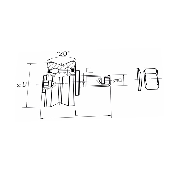 Profiled guide roller E..-ZZ with pin, double row bearing, eccentric, steel shields on both sides, incl. lock washer and nuts, CTS